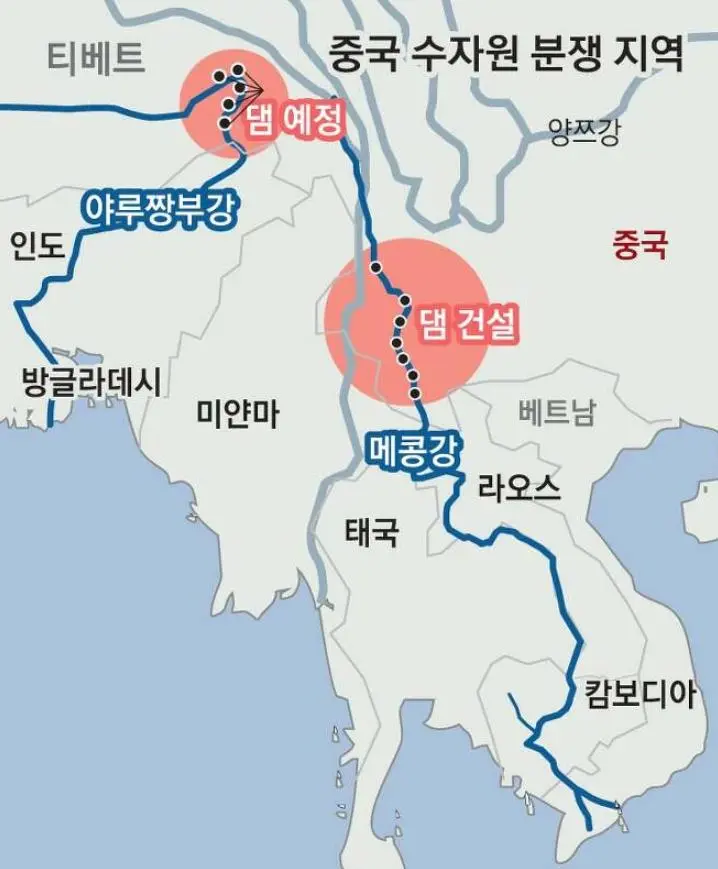 티벳과 메콩강 상류에 댐을 대규모로 건설하면서 이야기가 달라짐.